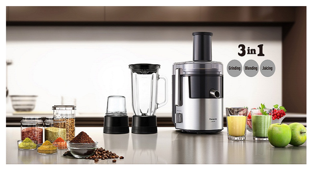 Máy xay ép đa năng Panasonic MJ-DJ31SRA 800W (Đen) có thiết kế nhỏ gọn, hiện đại, phần thân máy làm bằng thép không gỉ và nhựa, luôn sáng bóng, dễ lau chùi. Lưỡi dao và lưới lọc làm bằng thép không gỉ, lưỡi dao hình chữ S giữ trái cây không bị xoay, lực ly tâm ép nước và đẩy bã ra ngoài, lưỡi dao dưới sắc bén ép trọn vẹn nước trái cây, lưới lọc mắt nhỏ tách hoàn toàn bã ra khỏi nước ép.