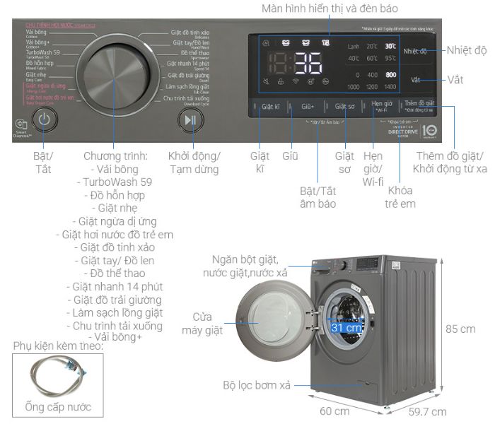 | Chất liệu lồng giặt | Thép không gỉ |
