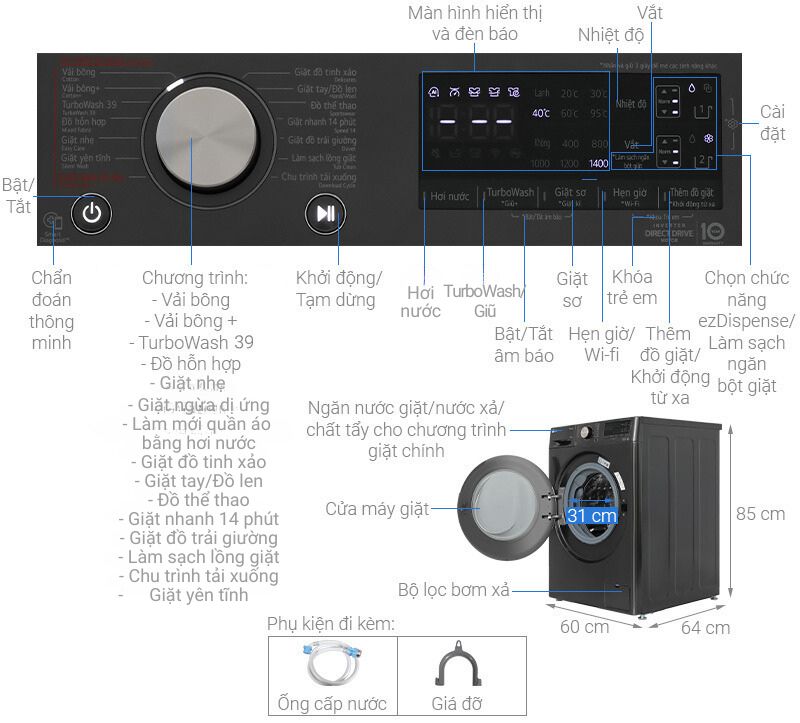 NHỮNG TÍNH NĂNG CHÍNH CỦA MÁY GIẶT LG FV1414S3BA