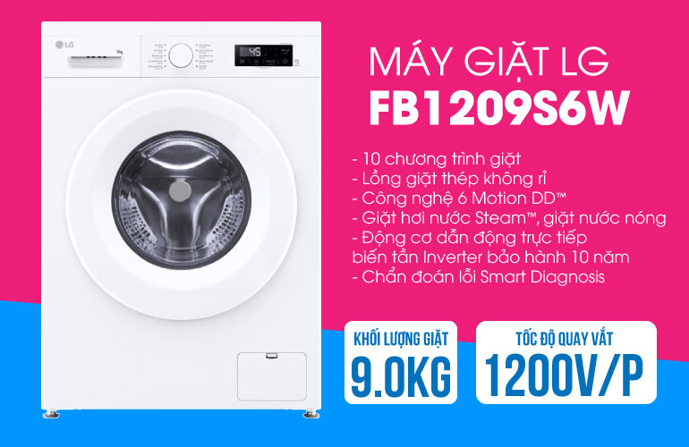 Máy giặt LG FB1209S6W là sự lựa chọn hoàn hảo cho những gia đình cần một sản phẩm đa năng, tiết kiệm năng lượng và bền bỉ. Với những tính năng vượt trội, sản phẩm không chỉ giúp tối ưu hóa quá trình giặt giũ mà còn mang lại sự tiện lợi và thoải mái cho người sử dụng.