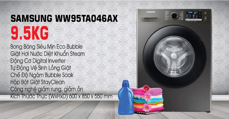Động cơ Digital Inverter được trang bị nam châm vĩnh cửu giúp máy giặt Samsung WW95TA046AX vận hành bền bỉ đến 23 năm, êm ái và đặc biệt là tiết kiệm 40% điện năng tiêu thụ. Máy nén được bảo hành lên đến 11 năm giúp khách hàng yên tâm hơn trong quá trình sử dụng