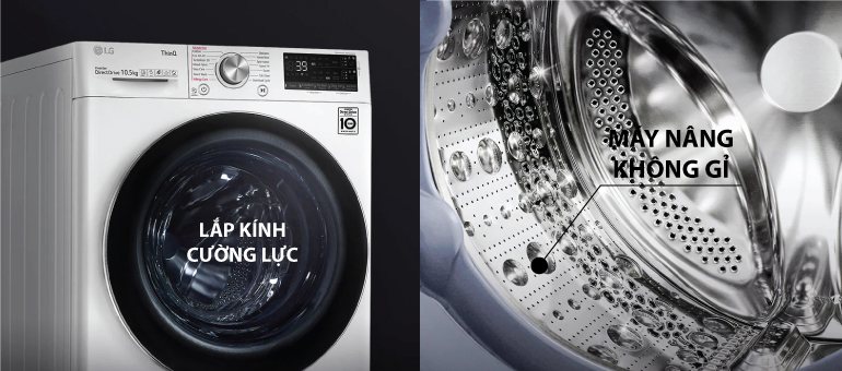 Máy giặt này được thiết kế lắp kính cường lực, cần năng bằng thép không gỉ cho độ bền cao hơn