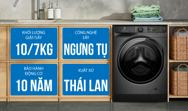 | Khối lượng giặt: | Giặt 10kg / sấy 7kg |