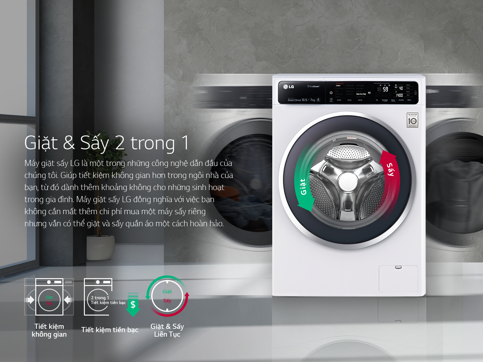 Động cơ Dẫn động trực tiếp - trái tim của máy giặt - cực kì đáng tin cậy và êm ái. Đây chính là động cơ tốt nhất dành cho máy giặt hiện nay, đó là lí do vì sao máy giặt LG được bảo hành tới 10 năm cho động cơ và linh kiện. Bền bỉ, êm ái chính là tiêu chí hàng đầu khi chọn máy giặt, bạn còn chờ gì nữa mà không trải nghiệm điều tuyệt vời này?