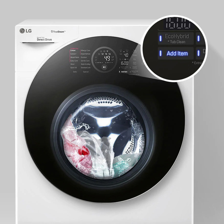 Công nghệ EcoHybrid có thể tiết kiệm nước hoặc rút ngắn thời gian của chu trình sấy. Bạn có thể chọn chế độ Sấy Eco để giảm lượng nước sử dụng bằng 0 hoặc Sấy Thông thường để giảm thời gian sấy của cả chu trình và tiết kiệm điện năng sử dụng.