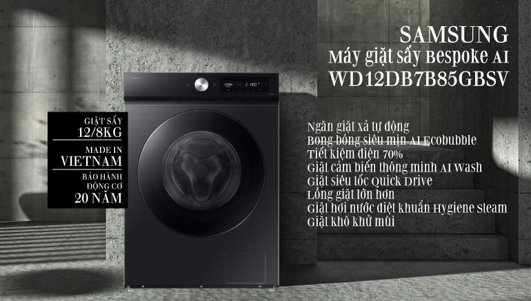 Với bảng điều khiển thông minh AI trên máy giặt Samsung WD12DB7B85GB có nhiều tiện ích nổi bật như tự động ghi nhớ, đề suất, phân tích chế độ giặt và cài đặt yêu thích dựa vào thói quen sử dụng mà không cần phải tùy chỉnh sau mỗi lần giặt. Bảng điều khiển dễ dàng sử dụng với quy trình hướng dẫn thông minh và kết nối với điện thoại thông minh qua ứng dụng SmartThings do đó bạn hoàn toàn có thể điều khiển máy giặt ở bất kì đâu