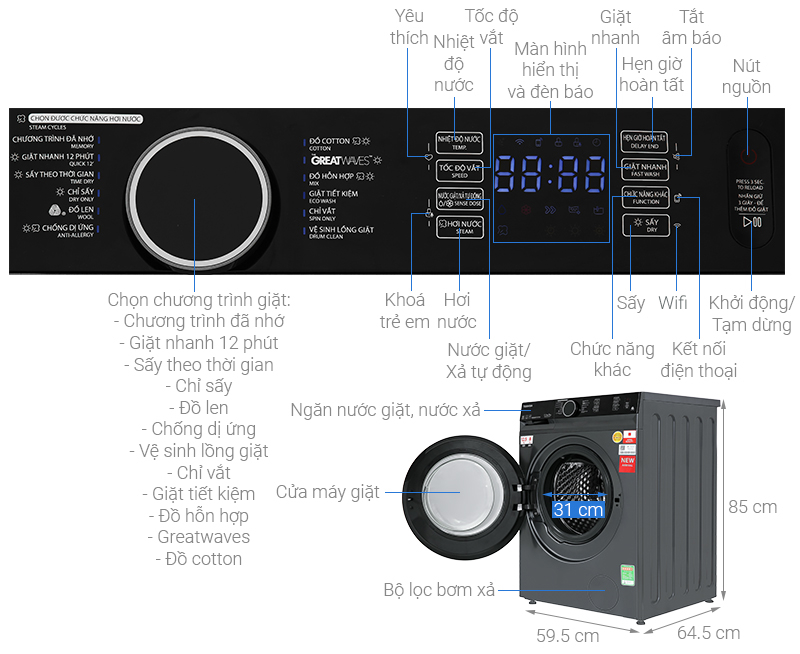CÁC TÍNH NĂNG NỔI BẬT CỦA MÁY GIẶT SẤY TOSHIBA TWD-BM135GF4V
