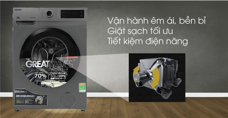 Động cơ BLDC giúp máy giặt Toshiba được vận hành êm ái, bền bỉ và tiết kiệm điện hơn. Ngoài ra, bộ cảm biến thông minh nâng cao hiệu quả giặt tối ưu