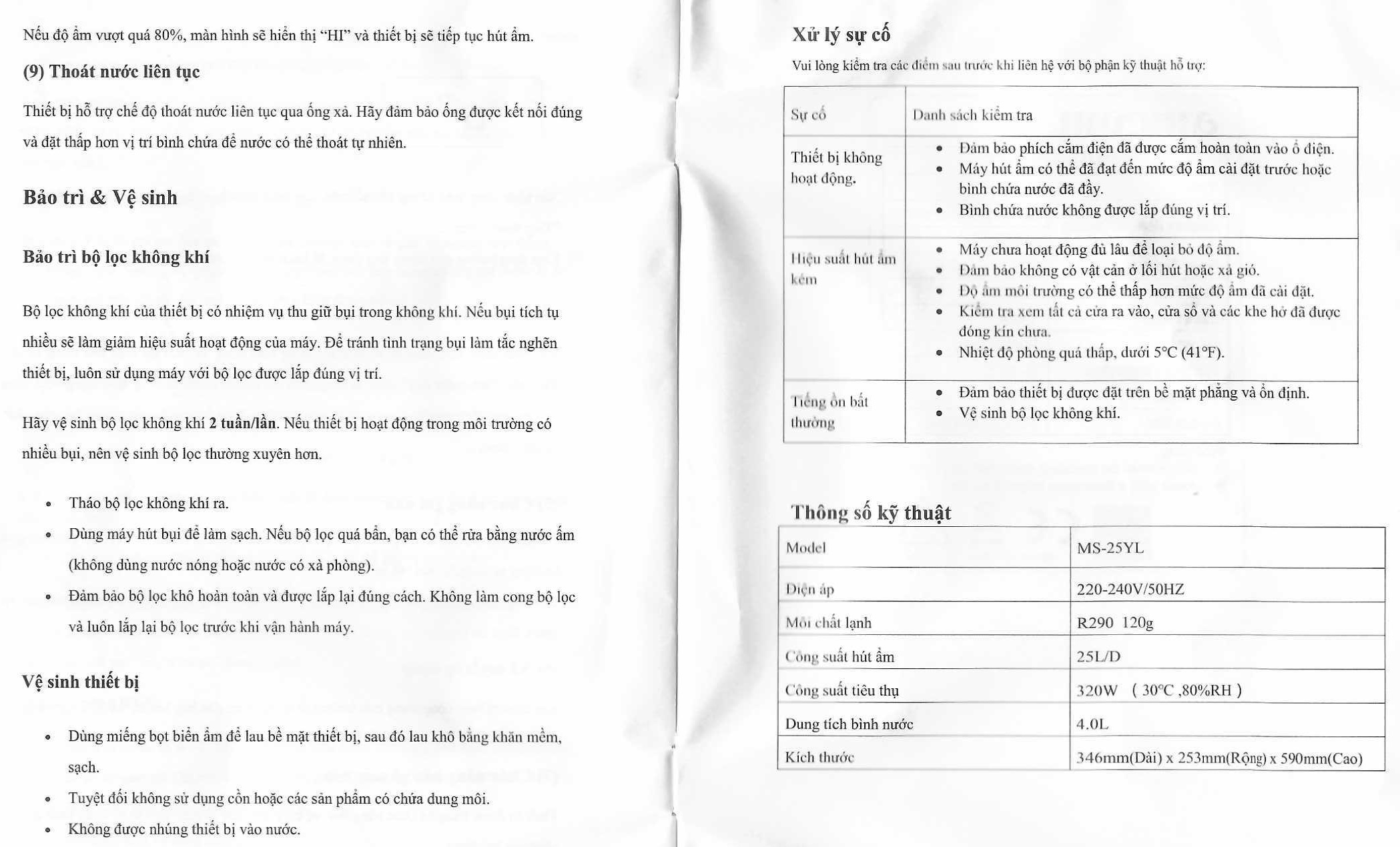 | Công suất hút ẩm | 25L/day (30°C RH80%) |