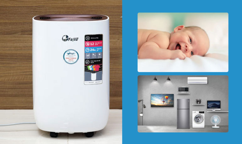 Đối với gia đình có trẻ nhỏ thường xuyên bị bệnh về đường hô hấp như hắt hơi, sổ mũi, ho.....thì máy hút ẩm FujiE sẽ là sự lựa chọn tuyệt vời cho gia đình bạn. Ngoài ra, máy hút ẩm còn có tác dụng bảo vệ đồ dạc trong nhà không bị hư hỏng do nồm, ẩm như Tivi, đồ điện, chăn, màn.......
