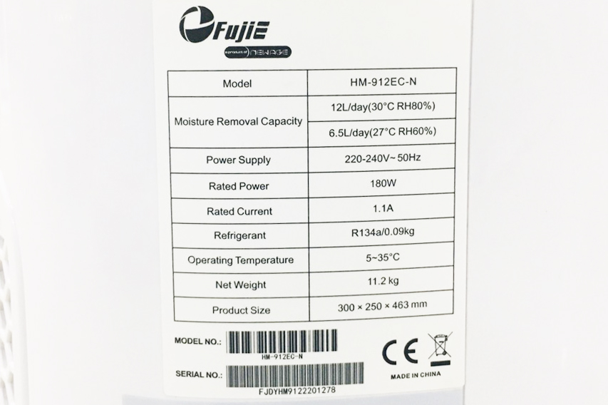 THÔNG SỐ KỸ THUẬT CỦA MÁY HÚT ẨM HM-912EC-N