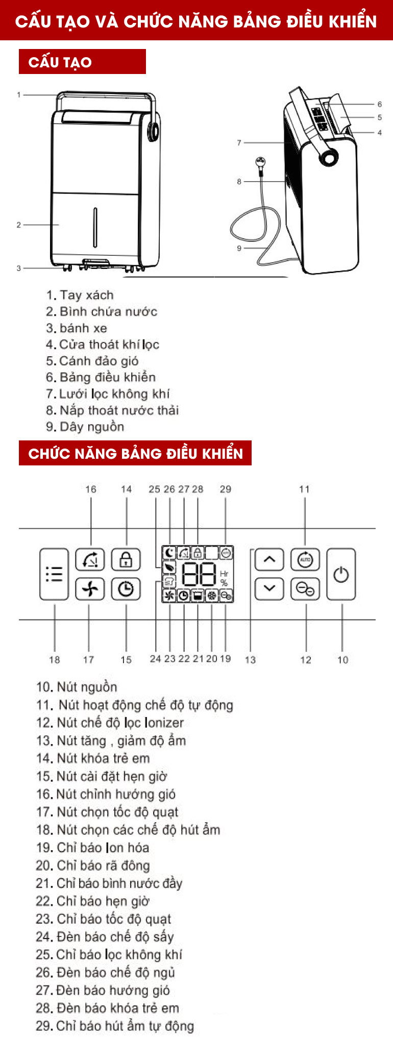 | Báo đầy nước | Hút ẩm tự động |
