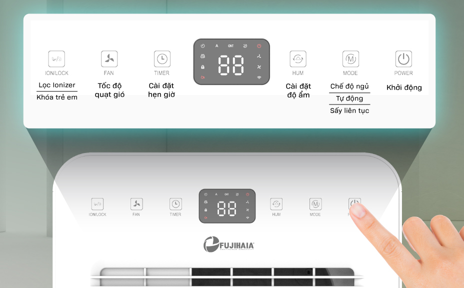 | Cài đặt độ ẩm mong muốn | Tự động kiểm soát độ ẩm |