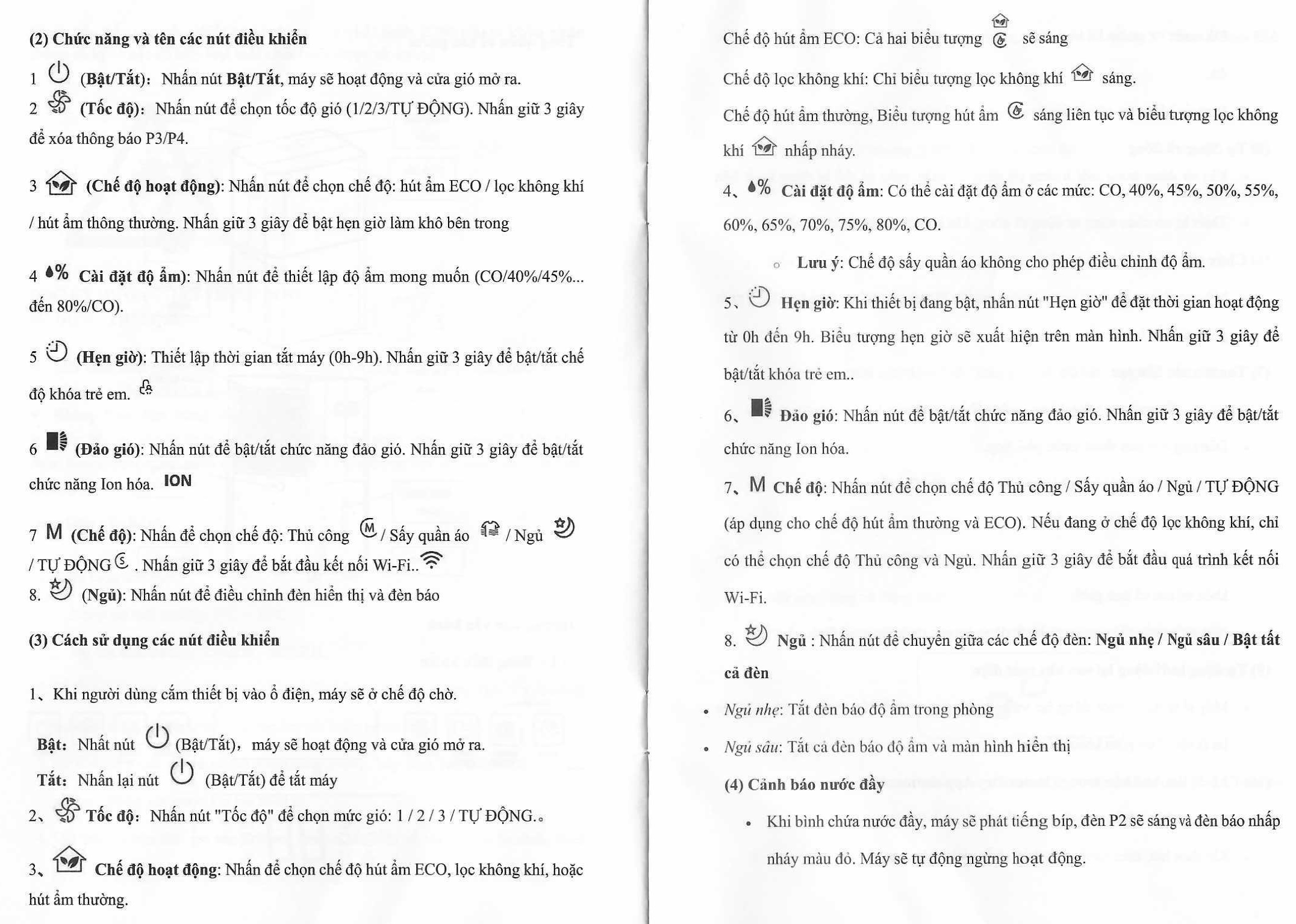 | Chức năng Ion hóa (Nhấn giữ 3 giây) | Kết nối Wifi (Nhấn giữ 3 giây) |