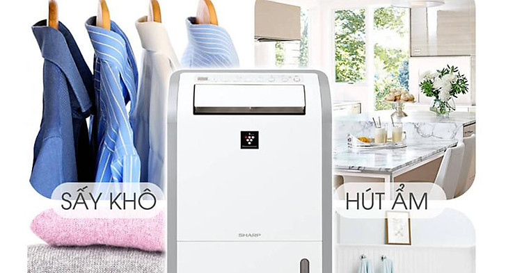 Chức năng sấy khô quần áo, thích hợp khi thời tiết ẩm ướt mưa nhiều, với khả năng hút ẩm khử khuẩn và khử mùi của Plasmacluster Ion sẽ nhanh chóng làm khô và khử hết mùi hôi của quần áo.