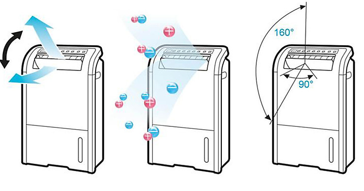 Máy hút ẩm và tạo Ion Sharp tự động đảo cửa gió để làm khô và hút ẩm trên diện tích lớn phù hợp với diện tích 50m2.