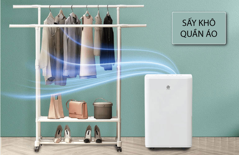 Có khả năng sấy khô quần áo nhanh chóng, loại bỏ hơi ẩm trên quần áo hiệu quả. Quá trình sấy khô sẽ không gây ảnh hưởng đến chất liệu vải. Đồng thời, máy hút ẩm New Widetech WDH312ENW1 có thể loại bỏ dễ dàng mùi ẩm mốc khó chịu trên quần áo do không thể phơi khô khi trời mưa kéo dài