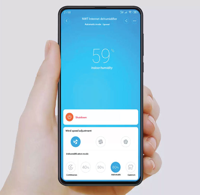 Bạn có thể quản lý và điều khiển máy hút ẩm từ xa thông qua ứng dụng App Mijia trên thiết bị smartphone. Chẳng hạn như bạn có thể kiểm soát độ ẩm theo thời gian thực, lựa chọn chế độ điều chỉnh phù hợp,… và có thể điều khiển thiết bị bằng giọng nói thông minh Xiao AI. Chỉ cần 1 câu lệnh, bạn có điều khiển máy hút ẩm New Widetech mà không cần phải sử dụng bất cứ nút nào trên bảng điều khiển.