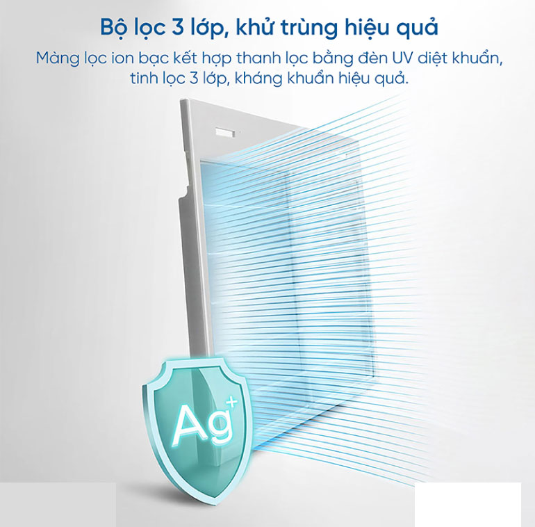 Với hệ thống thanh lọc UVC kết hợp với màng lọc ion bạc 3 lớp, Lumias D3 Pro không chỉ giúp không khí trong lành mà còn diệt khuẩn hiệu quả. Hệ thống lọc này đảm bảo loại bỏ vi khuẩn, virus và các hạt bụi siêu nhỏ, tạo ra bầu không khí an toàn và sạch sẽ.