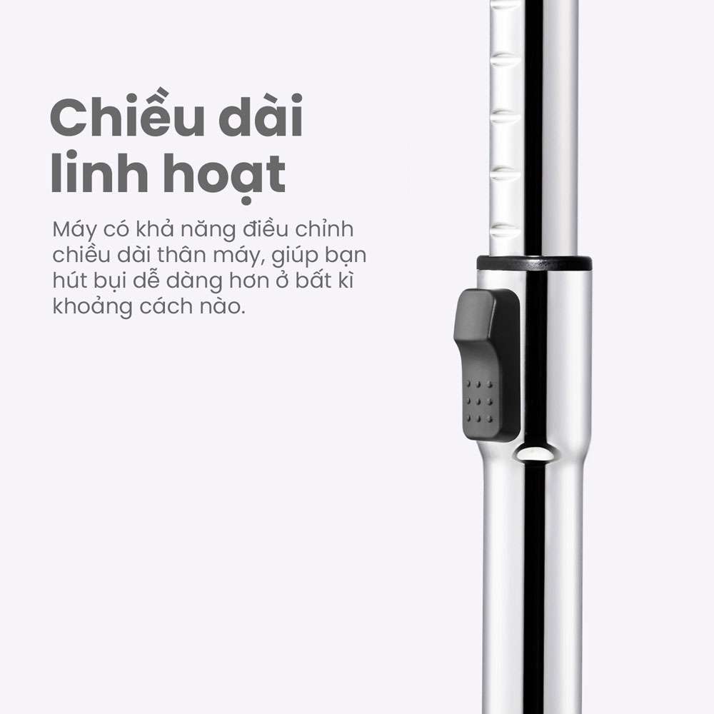 Máy hút bụi CVC-CBLA1(B) được cải tiến vô cùng thân thiện với người dùng. Chỉ với một nút bấm bạn đã có thể thay đổi chiều dài của tay cầm để dọn dẹp tại các không gian với các khoảng cách khác nhau.