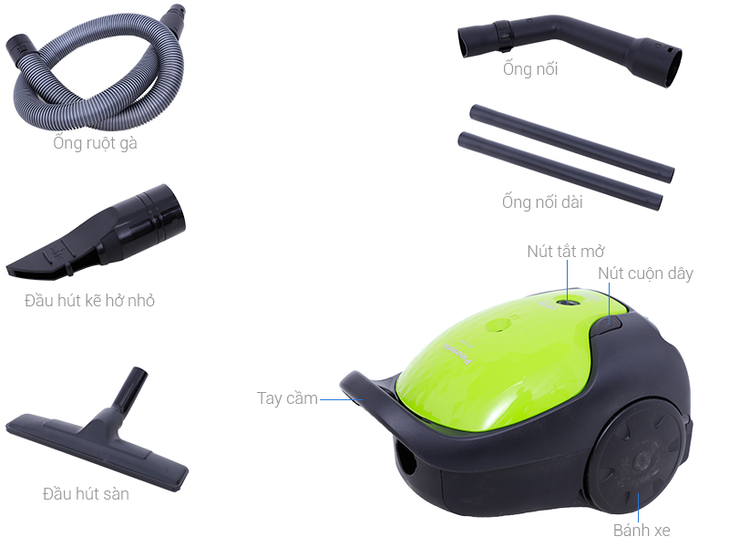 Máy hút bụi Panasonic có bánh xe giúp cho việc di chuyển nhẹ nhàng trong suốt quá trình vệ sinh nhà cửa
