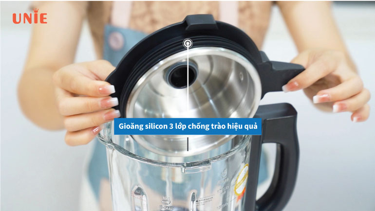 Unie V6S được thế kế NẮP chống trào thông minh được trang bị gioăng silicon cao cấp không gây mùi trong quá trình chế biến. phần cảm biến an toàn ở quai nắp giúp người dùng dễ dàng tháo lắp đúng vị trí khi dùng.