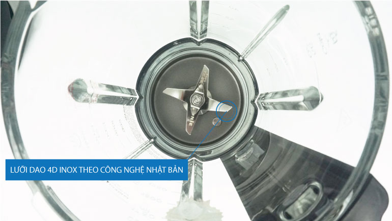 Với lưỡi dao được nâng cấp 4D, 8 cánh làm từ chất liệu Inox siêu bền cùng với động cơ mạnh mẽ quay 58.000 vòng/ phút giúp cho thực phẩm được xay nhuyễn, mịn các loại hạt cứng, đá viên, thịt, xương gà, xương cá, các loại rau củ quả khác mà vẫn giữ nguyên dưỡng chất