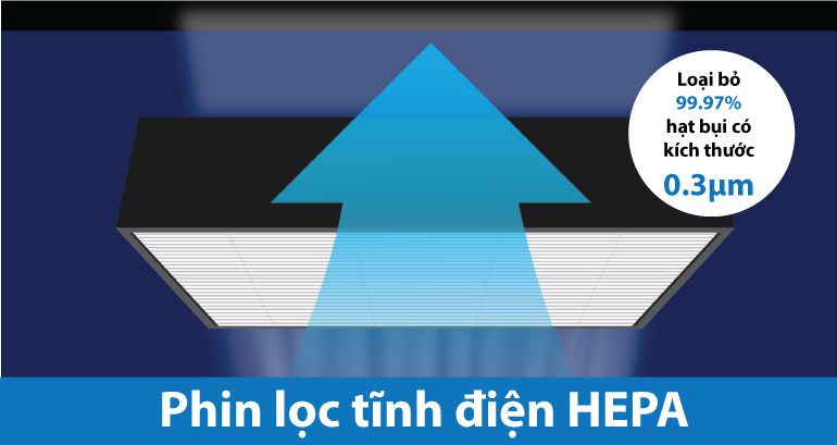 Loại bỏ 99.97% các hạt bụi có kích thước 0.3µm.