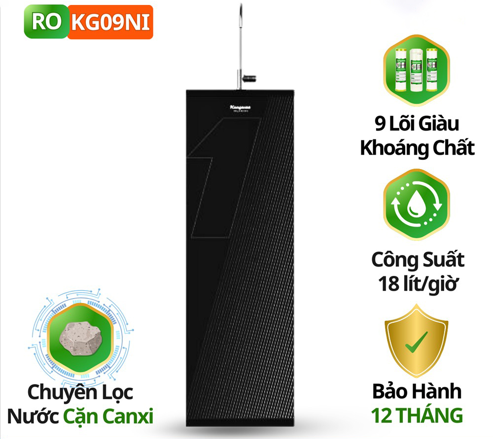Được trang bị 9 cấp lọc mạnh mẽ, máy lọc nước KG09NI diệt khuẩn đến 99,99%, bổ sung khoáng chất và cân bằng pH mang đến nguồn nước sạch khỏe cho cả gia đình: