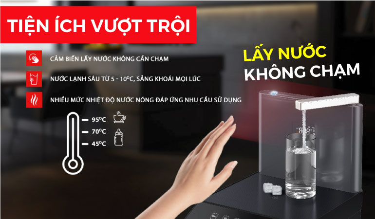 | Nhiệt độ nước | Nóng 45 - 70 - 95°C, Lạnh ≤ 10°C |