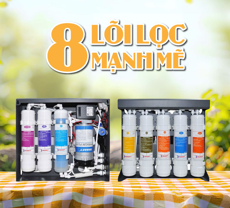 Hiệu suất lọc mạnh mẽ: Với 8 lõi lọc mạnh mẽ, sản phẩm này không chỉ loại bỏ các tạp chất độc hại mà còn bổ sung Hydrogen và kháng khuẩn Nano X2, giúp nước của bạn luôn trong lành và sạch sẽ.