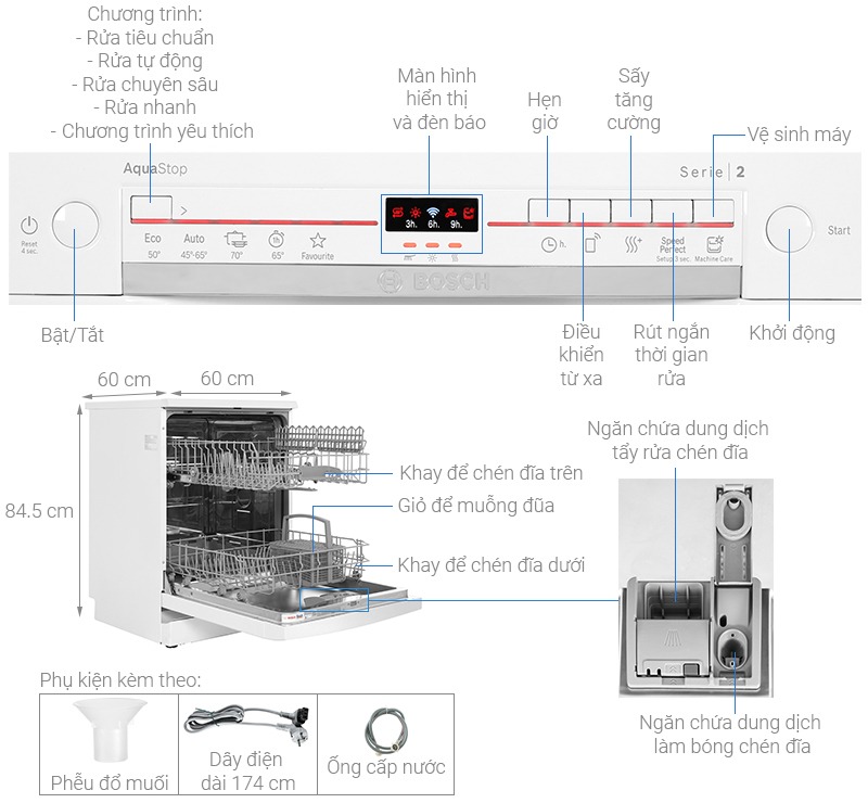| Tiêu thụ nước: | ~ 9.5 lít/lần rửa |