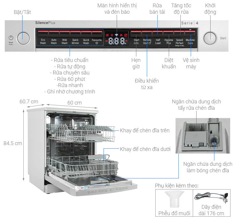 | Số lượng chén bát rửa được | 3 - 4 bữa ăn Việt (12 bộ Châu Âu) |