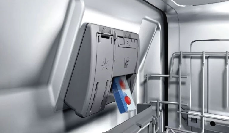Chức năng này giúp tối ưu hóa hiệu quả sử dụng viên rửa bát bằng cách điều chỉnh lượng chất tẩy rửa cần thiết. Viên rửa bát sẽ được để ở 1 khoang đặc biệt tại khay trên, sau đó sẽ được pha trộn 1 cách có kiểm soát, từ đó giúp máy hoạt động tối ưu và tiết kiệm chất tẩy rửa hơn.