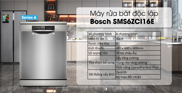 Máy rửa bát Bosch sở hữu lối thiết kế sang trọng, hiện đại nên thích hợp đặt để ở mọi không gian bếp và làm tăng tính thẩm mỹ cho căn bếp của bạn. Chất lượng máy và hiệu quả hoạt động đều đảm bảo tốt và êm ái 100%. Đối với các dòng máy rửa bát Bosch, hầu hết các serie đều được cấu tạo bởi các khung có chất liệu inox chắc chắn, không gỉ, không bám vân tay, dễ dàng lau chùi, giữ cho máy mới lâu.