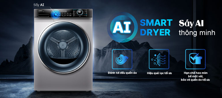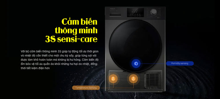 Máy sấy bơm nhiệt Aqua AQH-H1000J.PS sử dụng khí gas trong môi trường áp suất cao để tạo ra luồng khí nóng thổi vào lồng sấy. Luồng khí nóng này sẽ lấy hơi ẩm từ quần áo, chuyển thành những luồng khí nóng ẩm và được làm mát ngay tại lồng sấy. Khi sấy, hơi ẩm được ngưng tụ thành nước và đẩy lên hộp chứa phía trên.