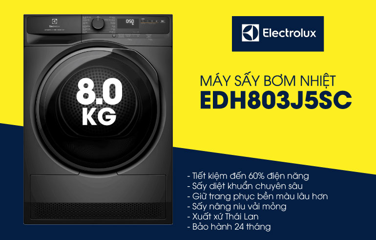 Máy sấy bơm nhiệt Electrolux EDH803J5SC không chỉ mang đến khả năng sấy khô nhanh chóng, hiệu quả mà còn bảo vệ trang phục tối ưu. Với những tính năng hiện đại, sản phẩm này là trợ thủ đắc lực cho mọi gia đình, giúp bạn tiết kiệm thời gian và công sức trong việc chăm sóc quần áo.