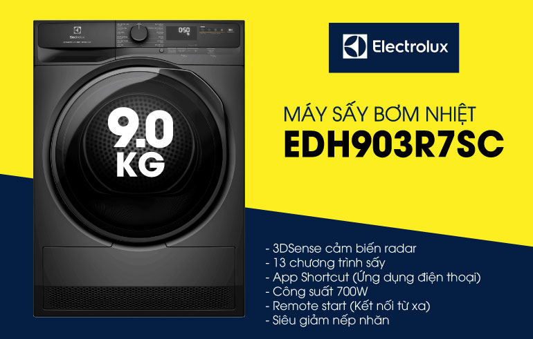 Máy sấy bơm nhiệt Electrolux EDH903R7SC là lựa chọn tuyệt vời dành cho gia đình hiện đại, giúp việc chăm sóc quần áo trở nên dễ dàng và tiết kiệm hơn. Với hàng loạt tính năng tiên tiến, sản phẩm này không chỉ làm khô quần áo nhanh chóng mà còn bảo vệ sợi vải và tiết kiệm năng lượng hiệu quả.
