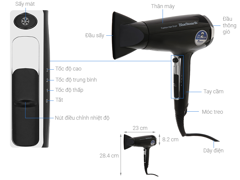 Thông tin: Máy sấy tóc Bluestone HDB-1846
