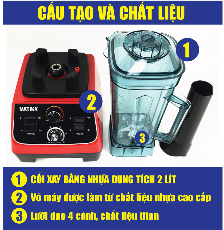 Cối xay được làm bằng chất liệu Poly Cacbonat cao cấp an toàn khi sử dụng, không chứa BPA