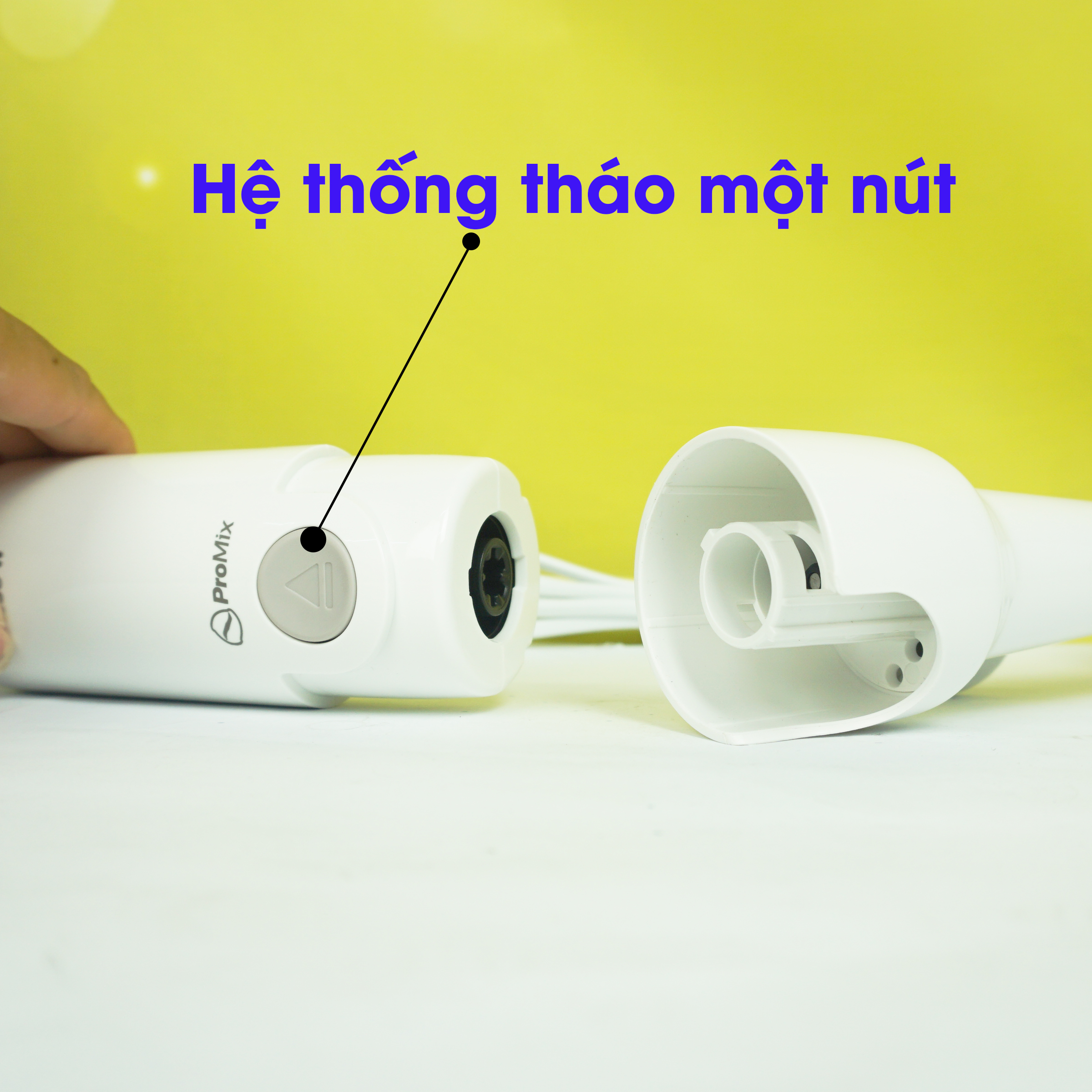 Máy xay Philips HR2531 dễ dàng tháo lắp các phụ kiện bằng cách nhấn nút để có thể sử dụng nhiều chức năng khác nhau.