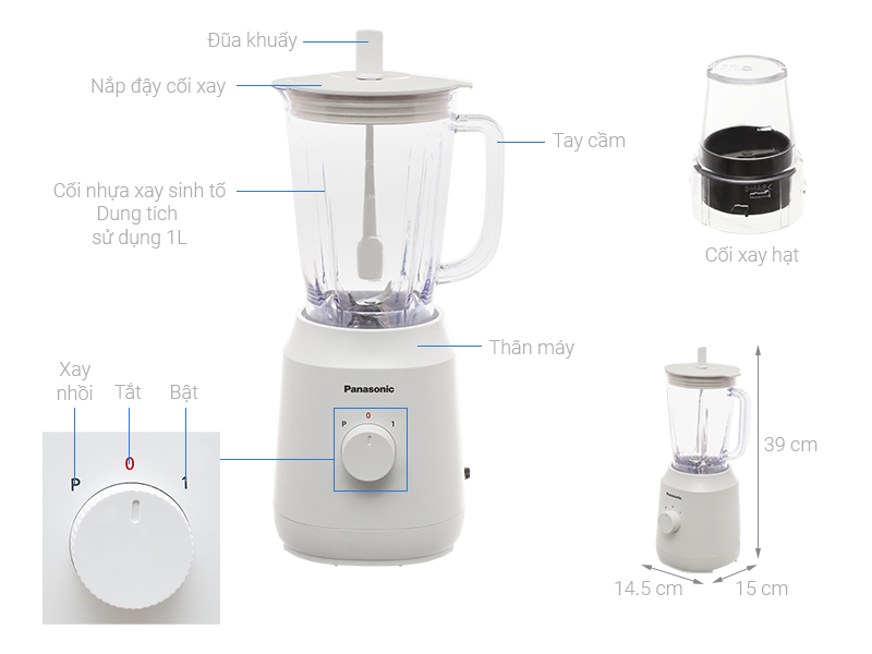 Điều khiển băng nút vặn với 1 tốc độ xay và 1 nút nhồi P trộn đều nguyên liệu