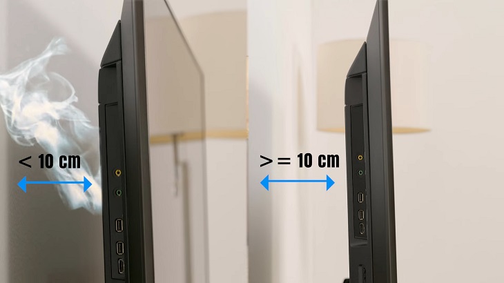 Tại sao khoảng cách lại là 10cm. Bởi với khoảng cách này, hơi nóng khi thoát từ tivi sẽ có đủ không gian để luân chuyển vào không khí; giúp giảm bớt nhiệt độ của tivi tỏa ra ngoài.
