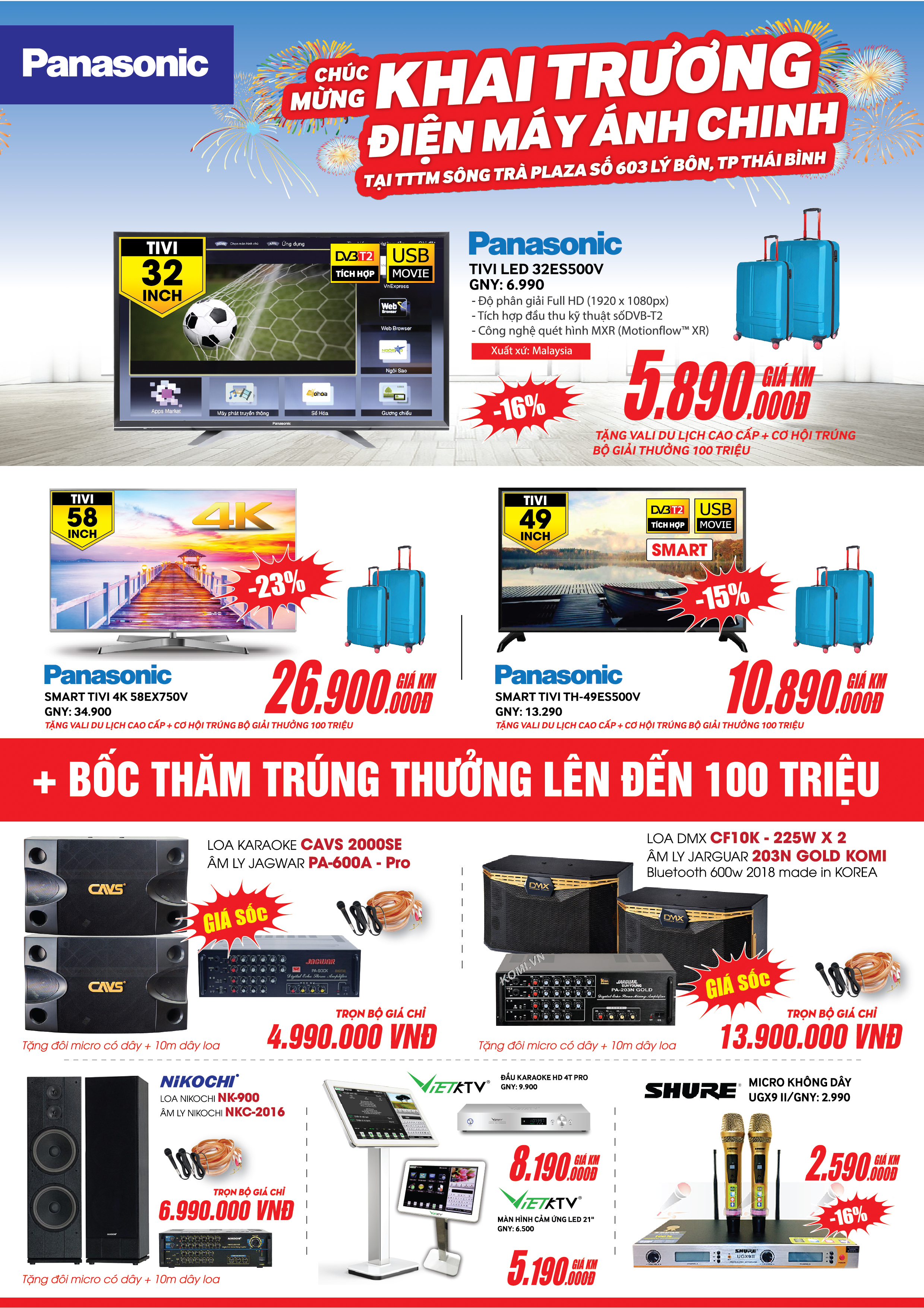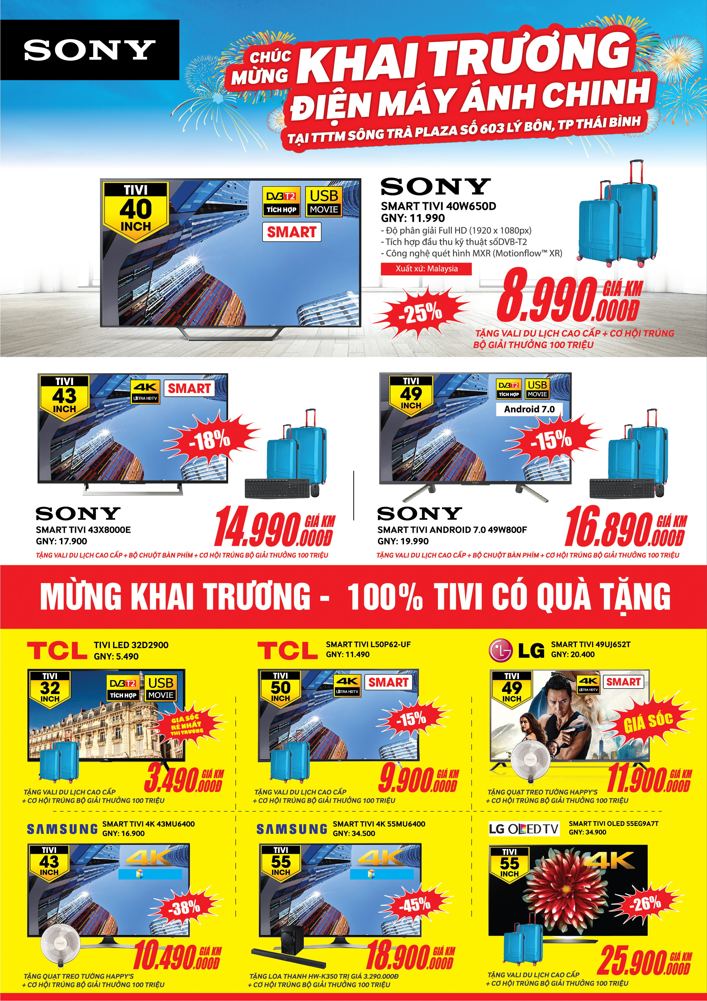Các bạn thân mến! Ngày 09/11/2018, Sông trà Plaza sẽ chính thức khai trương cửa hàng tại địa chỉ: Số 603 Lý Bôn - Phường Trần Lãm - TP Thái Bình. Click để xem các chương trình bốc thăm trúng thưởng