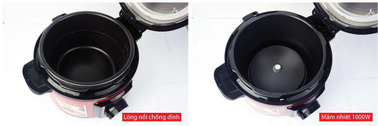 Lòng nồi được phủ một lớp sơn chống dính Whitford (USA) siêu bền an toàn cho sức khỏe người sử dụng với chất liệu hợp kim nhôm