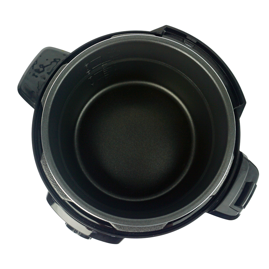 Lòng nồi áp suất dày 2.3 mm, bằng hợp kim nhôm phủ lớp chống dính có độ bền cao, nấu ăn an toàn, không tiết ra chất độc hại, hạn chế dính cháy, dễ làm sạch