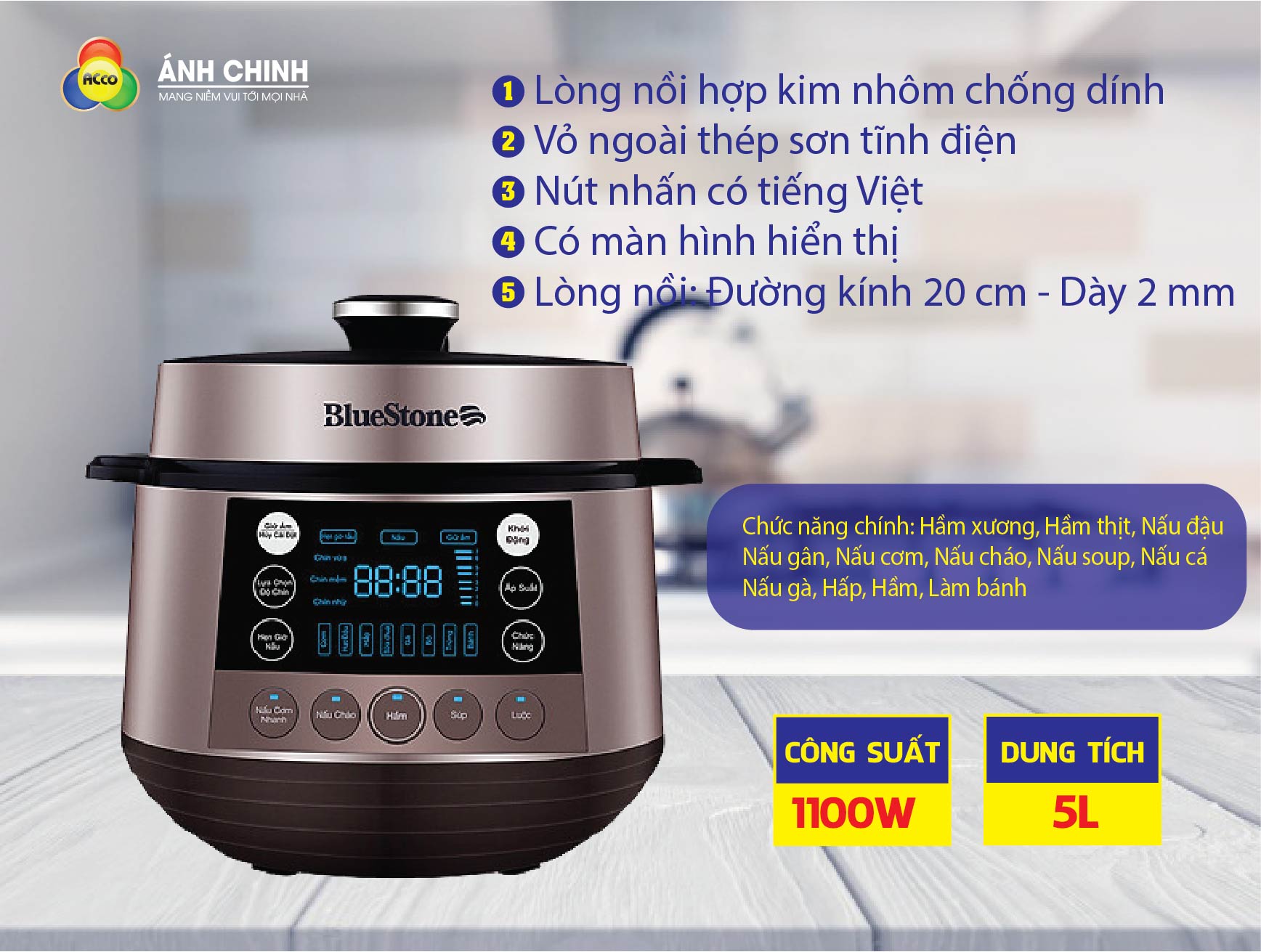 Nồi áp suất Bluestone 5 lít PCB-5763 có mẫu mã đẹp mắt, đa chức năng, nấu ăn nhanh, là sự lựa chọn đúng đắn cho chị em nội trợ hiện đại.