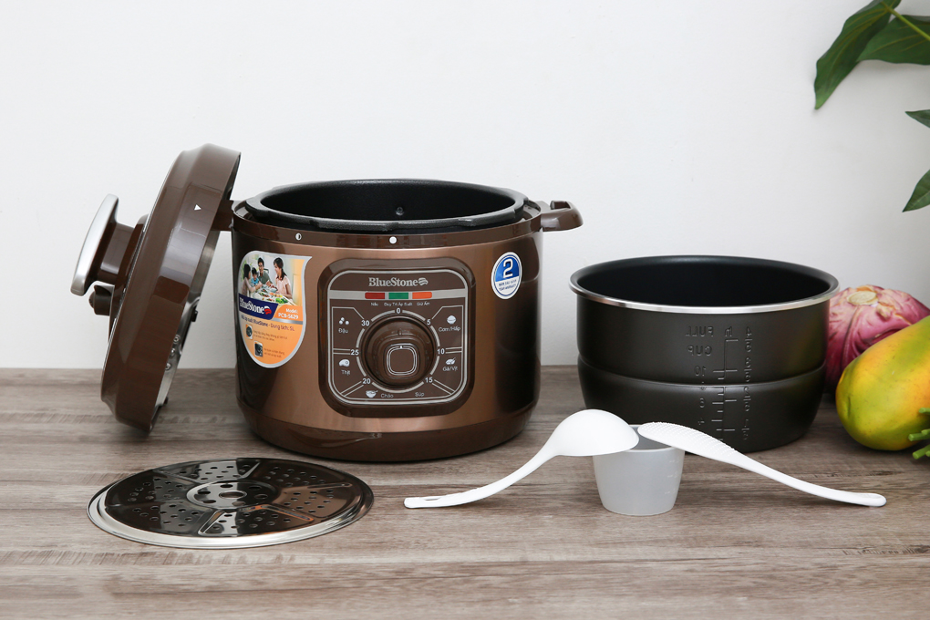 Nồi áp suất điện đa năng BlueStone PCB 5629 đa chức năng nấu với nhiều chế độ nấu giúp bạn có thể chế biến nhiều món ăn ngon cho cả gia đình mà không mất quá nhiêu thời gian, không những thế mà món ăn còn giữ được chất dinh dương, hương vị của món ăn, không mất công phải trông chừng món. Lòng nồi dày dặn 1,8mm phí bên trong lòng nồi được phủ chống dính Ceramic cao cấp, an toàn cho sức khỏe, không chất độc hại sản phẩm đạt tiêu chuẩn chất lượng Châu Âu, thời gian bảo hành sản phẩm lên đến 24 tháng kể từ ngày mua hàng.