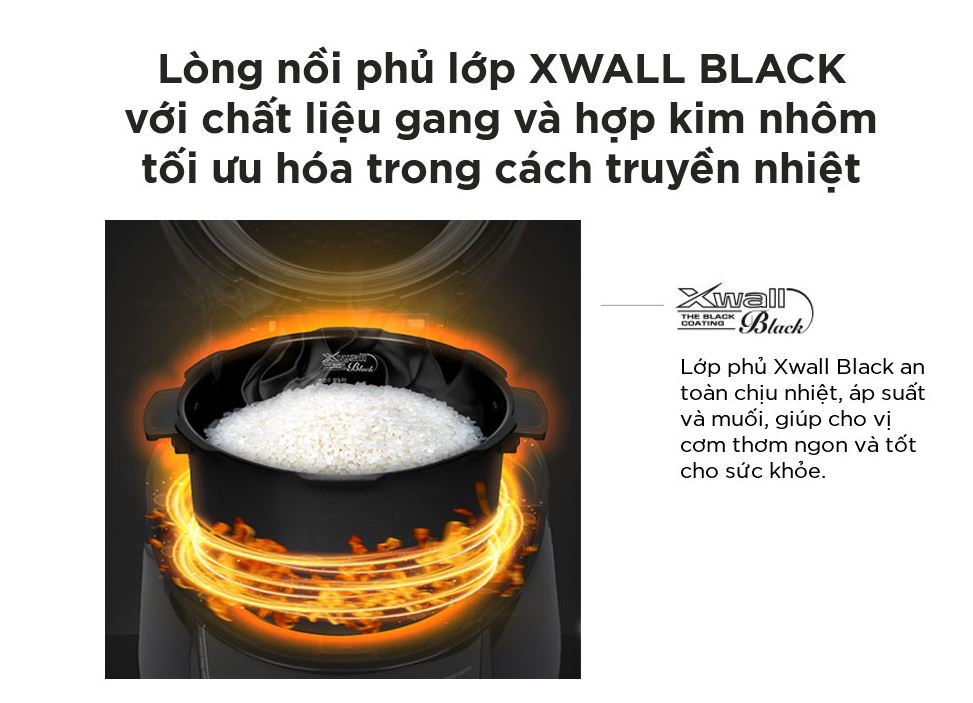 Lòng nồi được phủ 1 lớp XWALL BLACK an toàn cho người sử dụng, được làm từ chất liệu gang và hợp kim nhôm cho khả năng nấu cơm ngon và giữ ấm tốt. Đây là chất liệu cao cấp được phủ trên các dòng nồi Cuckoo, an toàn tuyệt đối với người sử dụng nên bạn hoàn toàn yên tâm khi sử dụng nồi.