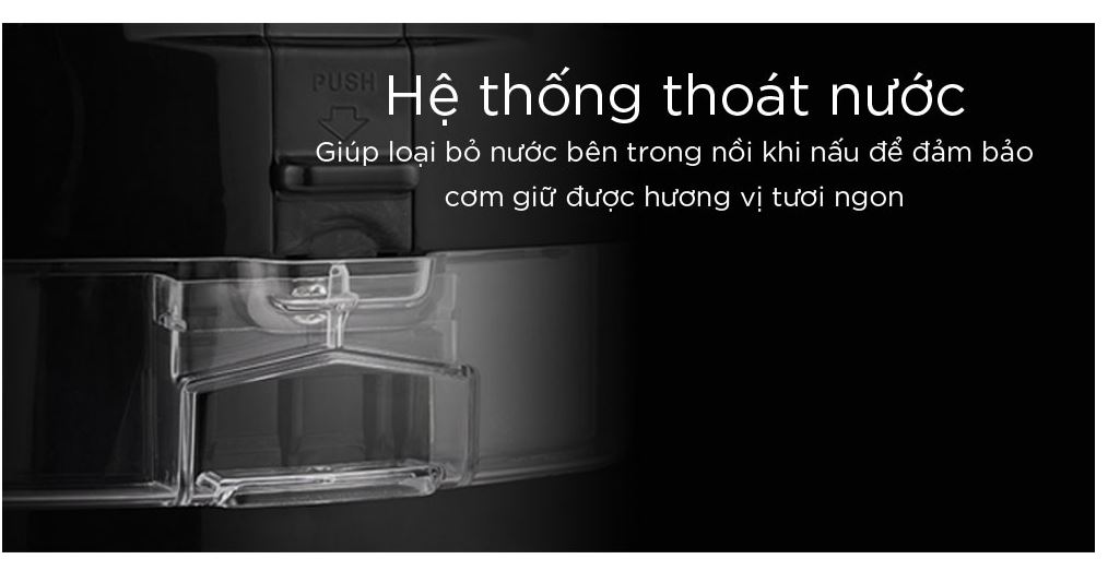 Hệ thống thoát nước giúp loại bỏ nước bên trong nồi khi nấu, đảm bảo cơm giữ được hương vị tươi ngon, không bị nhão, ướt.